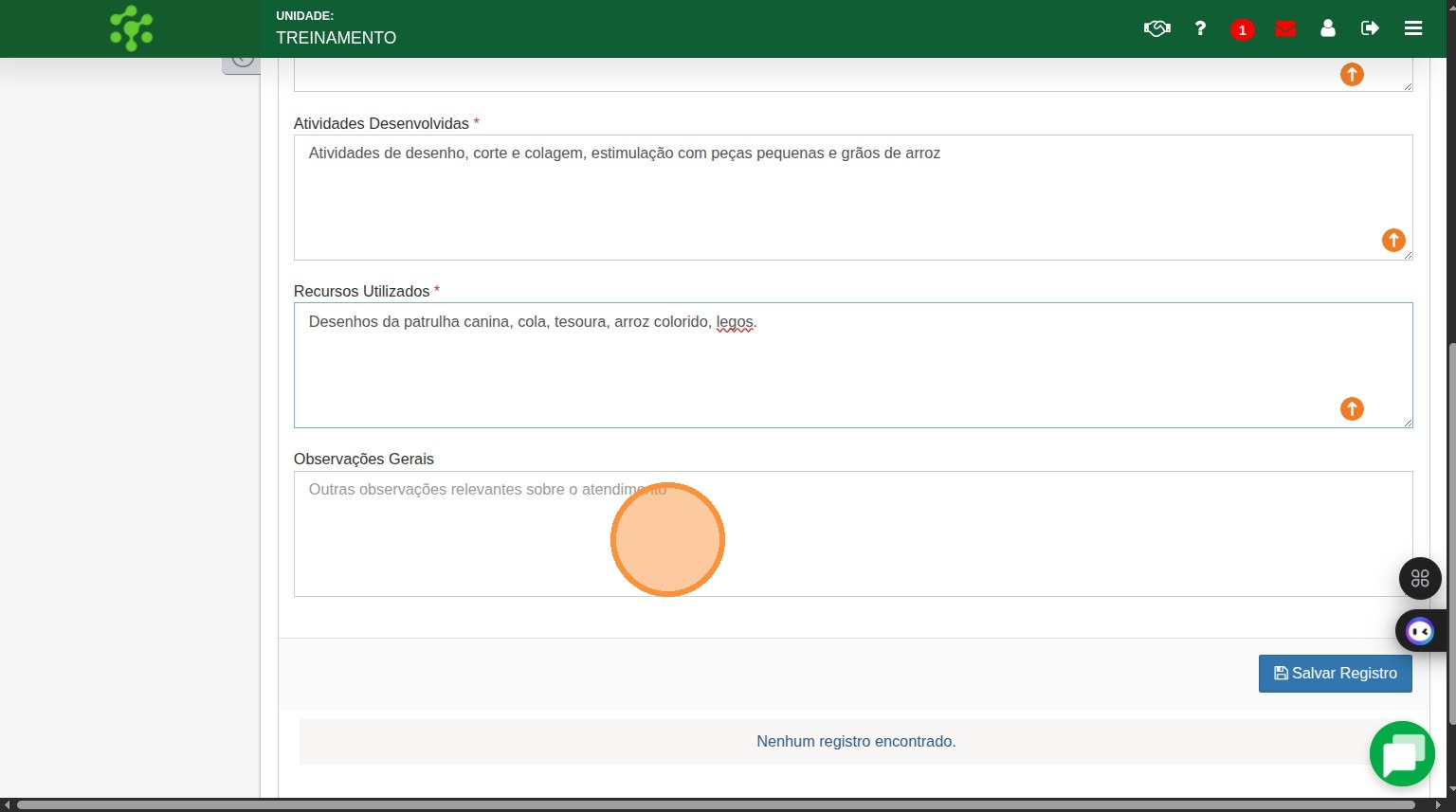 3. Neste ambiente você ira fazer o registro das atividades do seu atendimento, informe a data de realização do atendimento, selecione o tipo de atendimento podendo ser um atendimento individual ou coletivo.